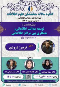 پیش نشست ” توسعه عدالت اطلاعاتی، همکاری بین مراکز اطلاعاتی ” روز سهشنبه ۲۰ آبان ۱۴۰۴ از ساعت ۱۰ تا ۱۲ به صورت مجازی برگزار میشود.