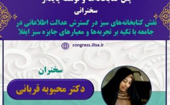 سخنرانی پنل کتابخانهها و توسعه پایدار نهمین کنگره سالانه متخصصان علوم اطلاعات با عنوان “بررسی نقش کتابخانههای سبز در تحقق عدالت اطلاعاتی با تمرکز بر معیارهای جایزه کتابخانه سبز IFLA …